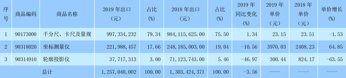 表4 2019年量具、量?jī)x出口分類(lèi)