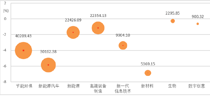 從戰(zhàn)新產(chǎn)業(yè)分類的角度來看,8個產(chǎn)業(yè)利潤3增5降。