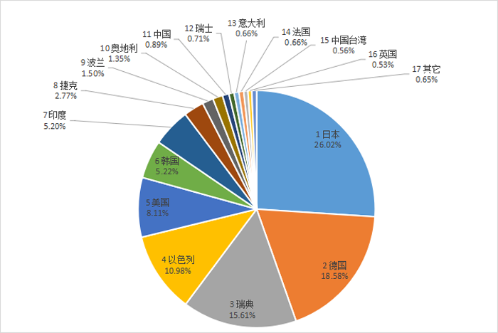 涂層刀片進口來源地主要為:日本26.02%;德國18.58%;瑞典15.61%;以色列10.98%;美國8.11%;韓國5.22%;印度5.2%。