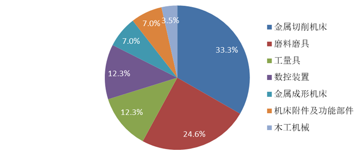 從行業上市公司的細分行業分布來看,金屬切削機床行業居首,占33.3%;磨料磨具行業其次,占24.6%;工量具和數控裝置均占12.3%;金屬成形機床和機床附件及功能部件均占7.0%。具體行業分布情況如圖2所示。