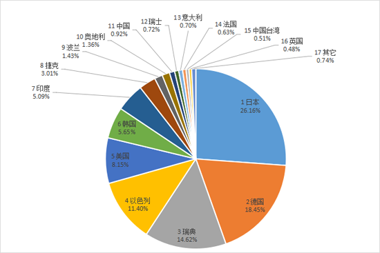 涂層刀片進口來源地(占比見表5)主要為:日本26.16%;德國18.45%;瑞典14.62%;以色列11.4%;美國8.15%;韓國5.65%;印度5.09%。非涂層刀片進口來源地(占比見表6)主要為:日本75.38%;德國8.82%;韓國6.13%;盧森堡1.69%;以色列1.49%;泰國1.34%;美國1.27%。