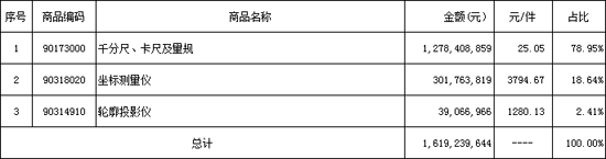 量具出口額(12.78億元)遠大于進口額(3.13億元),量儀出口額(3.41億元)遠小于進口額(10.09億元)),量具和量儀出口增長,進口下降。