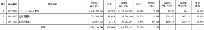 1.2022年量具和量儀出口情況