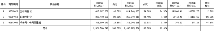 2.2022年量具和量儀進口情況