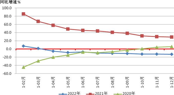 12020-2022三年期間重點聯系企業營業收入同比增速情況的對比。