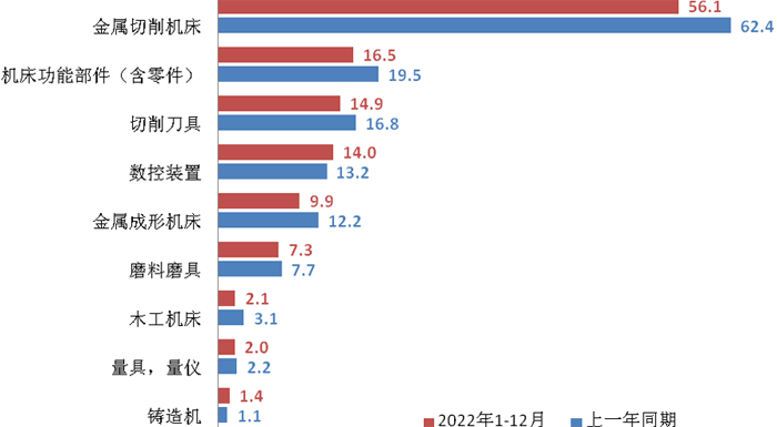 20221-12月金屬加工機床進口額66.0億美元,同比下降11.5%。其中,金屬切削機床進口額56.1億美元,同比下降10.1%;金屬成形機床進口額9.9億美元,同比下降19.0%