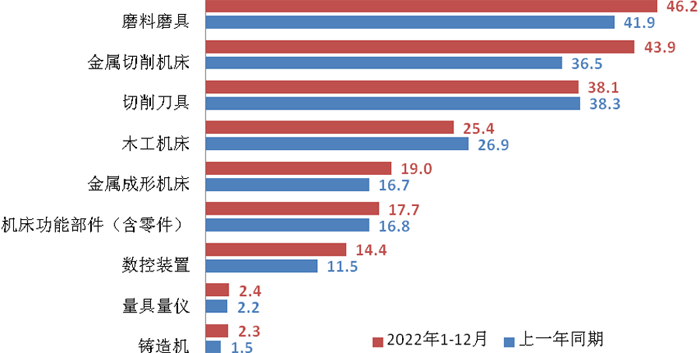 20221-12金屬加工機床出口額62.9億美元,同比增長18.3%。其中,金屬切削機床出口額43.9億美元,同比增長20.4%;金屬成形機床出口額19.0億美元,同比增長13.6%