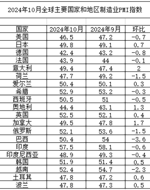 全球經濟恢復弱勢平穩,2024年10月份PMI為48.8%