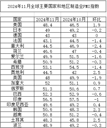 11月全球制造業(yè)PMI,指數(shù)小幅上升,