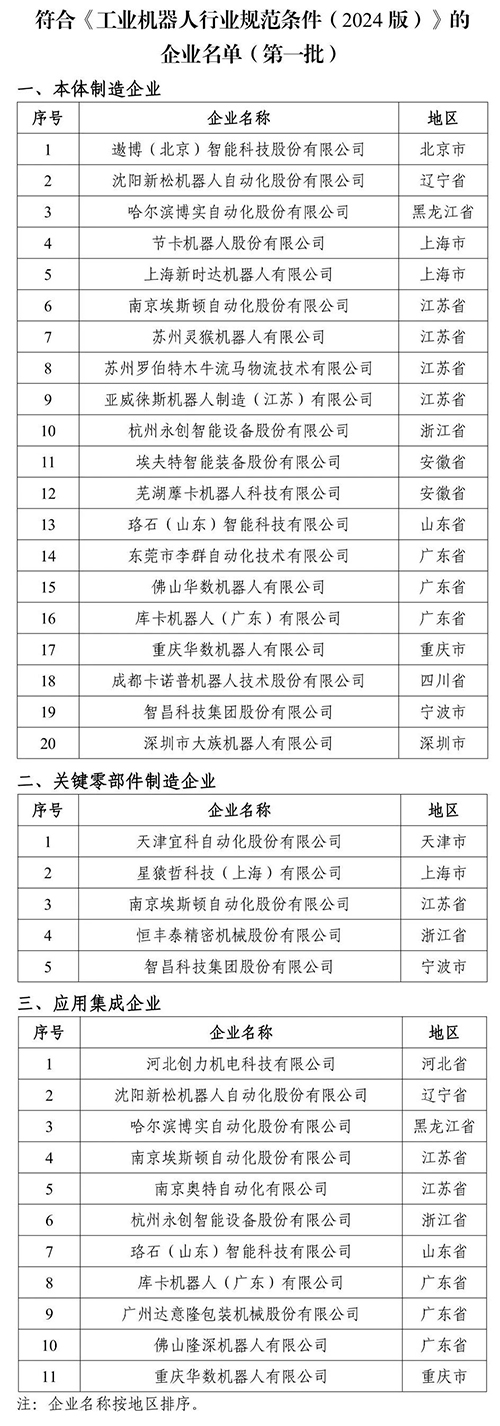 多家工業(yè)機(jī)器人企業(yè)上榜首批符合新行規(guī)企業(yè)名單(共27家)