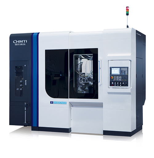 Y3132CNC6數控滾齒機作為公司拳頭產品,由公司自主研制,擁有多項新技術:機床床身、立柱采用多層壁的箱體結構,剛性及承載能力增強,確保機床具有較高的剛性、穩定性;機床刀架主軸、工作臺主軸采用進口品牌軸承組合,確保機床精度的穩定性和可靠性;通過對刀架及工作臺的質量控制,使得滾刀最高轉速達700r/min,工作臺最高轉速60r/min,當采用進口涂層滾刀,其切削速度可達120m/min,機床加工效率高;機床配有自主發明的“一種機床熱平衡系統”,機床熱變形隨時處于可控狀態,確保了機床加工過程尺寸的高穩定性,同時大大提高了軸承及傳動件的使用壽命;機床配置了具有自主知識產權的自動對齒打標機構,能完成雙聯齒的自動對齒打標。