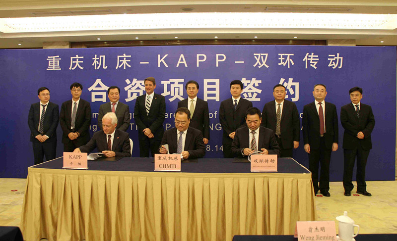 日前,重慶機床(集團)有限責任公司與德國KAPP GmbH&Co.KG及浙江雙環傳動機械股份有限公司三方舉行了智能制造合資合作項目簽約儀式。根據三方簽訂的框架協議,合資公司將設立在重慶,主要致力于機械、汽車、輕工、紡織、航空等行業現有生產設備的智能化提升,并將提供新型智能裝備以及相關系統集成與制造服務等產品,向除歐美以外的汽車等行業用戶提供智能工廠以及數字化車間(工業4.0)相關的完整流水線制造解決方案。
