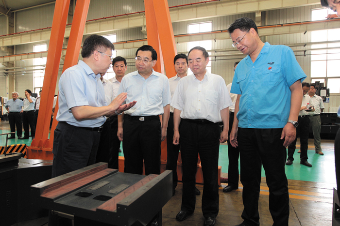 日前,中國工程院院長周濟一行在陜西省省長胡和平的陪同下到秦川機床工具集團股份有限公司,調研指導企業落實《中國制造2025》和智能制造推進情況。集團公司董事長龍興元、總裁胡弘、副總裁田沙及集團董事、寶雞機床董事長李強等分別就企業經營情況、智能制造發展、企業轉型升級等工作做了匯報。