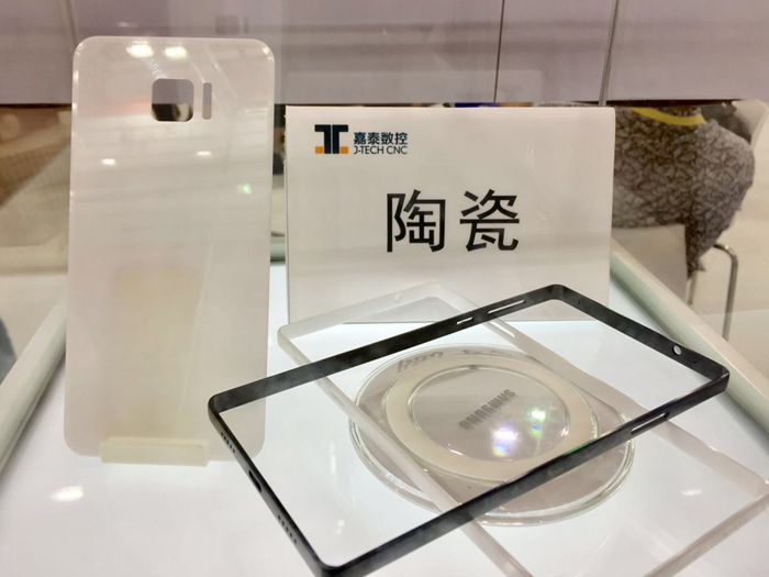 說到這臺超聲波加工機,蘇總拿出了一個精致的長方形“首飾盒”,打開盒子,仔細取出幾樣東西,是透明玻璃、白色陶瓷的手機殼和黑色的手機邊框,都是此類設備的加工樣件!蘇總給記者逐一講解這些手機部件的材質和特點,2D、2.5D、3D玻璃后殼,黑色、白色陶瓷邊框和蓋板……,隨后還拿起其中的某些件摔向地面,竟然毫發(fā)無損??梢哉f,嘉泰已經為3C產品甚至其他重要領域的后續(xù)發(fā)展需求做好了準備!據說,目前超聲波加工中心已經開始接受大批量訂貨,蘇亞帥預計到2019年,即5G網絡上線時會達到需求爆發(fā)期。