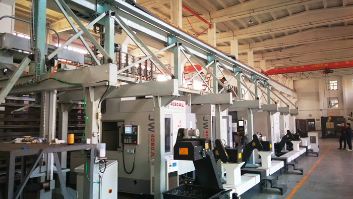 2017年,沈飛聯合華中數控與沈陽精銳數控機床有限公司共同建立了兩條航空復雜結構件智能加工生產線,嘗試從單機生產到智能化制造的轉型升級。該生產線包括臥式加工中心4臺(四軸2臺,五軸2臺)、生產線物料庫及機械手1套、生產線中央刀庫及機械手1套、生產線管控系統1套。