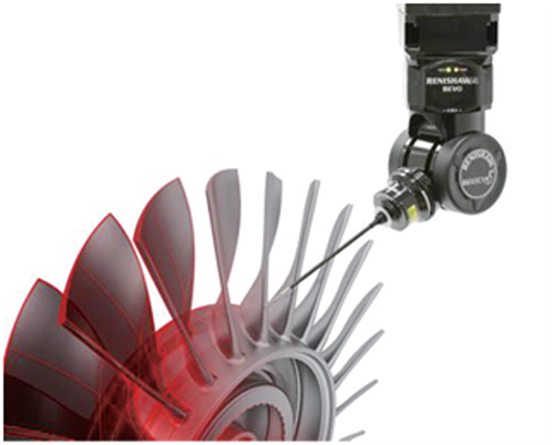 (2)采用配置多軸測座及高精度接觸式掃描測頭進行測量。雷尼紹公司的五軸測座和無級變速測頭系統在坐標測量機上能實現高精度、超高速掃描測量(見圖5)。