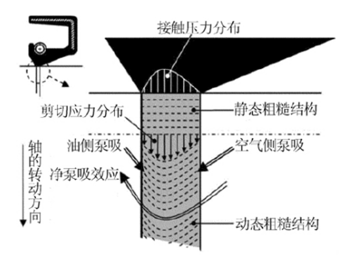 油封設(shè)計主要考慮潤滑、密封和泵吸三種機制。油膜厚度、接觸載荷、接觸寬度、油封唇角、轉(zhuǎn)速和彈簧偏移量等都對泵吸效應(yīng)產(chǎn)生影響。只有當(dāng)油側(cè)唇角大于空氣側(cè)唇角時才存在泵吸,密封效果最佳;當(dāng)油側(cè)唇角小于空氣側(cè)唇角時,一定會泄漏。
