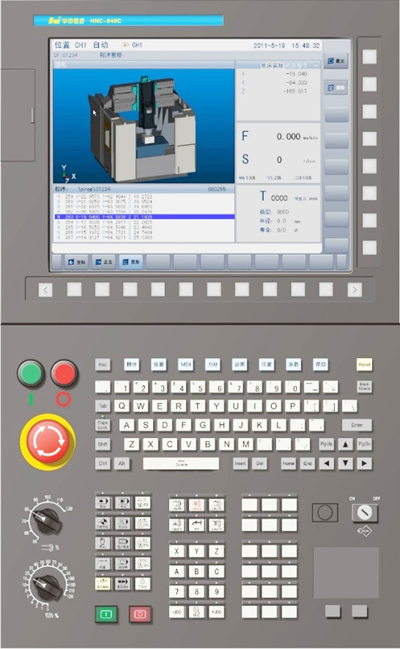 配置華中HNC-848D型高檔數控系統,具有一次裝夾完成銑、鉆、鏜、鉸、攻絲多工藝復雜曲面零件加工能力。
