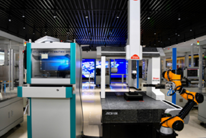 新天自動化檢測線結合先進的檢測技術和自動化技術,具有影像式、接觸式、線激光、3D激光、瑕疵檢測等多樣化的檢測方式,由協作機器人進行工件抓取。各分工站可以單獨運行檢測分檢系統,能滿足客戶多樣化的檢測需求??蓪Ω鱾€工站運行狀態進行仿生模擬,使用較為超前的“數字雙生3D”系統展現各個工站的運行狀況,能實時傳輸檢測結果,進行大批量的數據采集、存儲和分析。系統還可以對自動化檢測環節中產生的檢測數據,如標準值、設置的公差帶、檢測結果等進行整理。客戶通過大量的數據分析,可以及時了解生產加工環節的狀態。