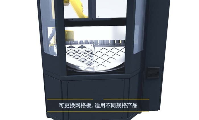 工作站配置旋轉裝載系統和通用網格板,最大工件直徑230mm;網格板的高度可調,最大250mm;可輕松實現機器人工作時設置新批次。