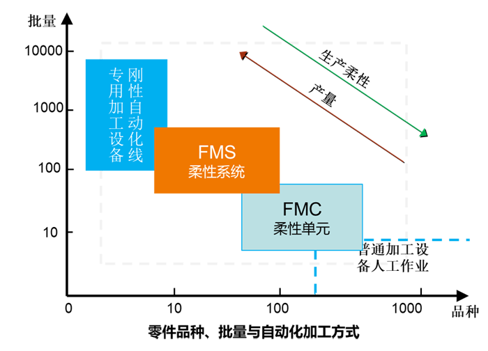 FMS柔性制造系統是面向中小批量、多品種機加工生產的解決方案,廣泛應用于航空航天、刀具模具、汽車、醫療、光學和工程機械等多個行業。