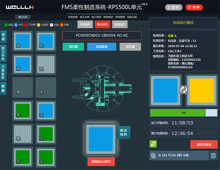FMS柔性制造系統主要由加工系統、物料儲運系統和控制與管理系統組成,可以較大程度提高設備利用率,減少設備的投資,提高生產效率,穩定產品質量,降低生產成本,提升對市場的快速響應能力,對于企業生產排程,訂單管理與調度,物料、物流和倉儲,刀具管理等有較大助益。