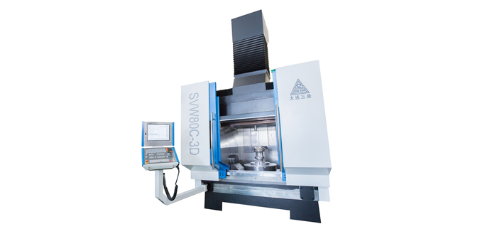 在減材方面:五軸聯動與三軸系統相比增加了A、C軸的搖籃式回轉工作臺,對工件一次裝夾,可實現全方位、多角度的切削加工,有效改善工件的表面質量,提高工作效率。
