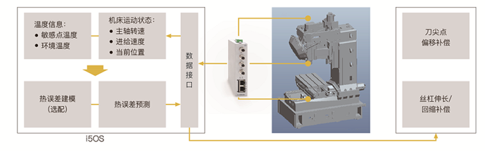 熱誤差補償:機床熱誤差是引起零件加工誤差的最主要因素之一,嚴重影響加工精度。目前熱誤差補償存在以下問題:要以較高的代價獲得建模數據;熱誤差模型魯棒性和預測精度較差;補償方式與CNC集成度不高。i5熱誤差補償可實現主軸Z向熱伸長的自動采集和基于工況的熱誤差模型建立及預測,CNC將補償值平均分配到每個插補周期中,在冷機、停機恢復狀態下無需熱機,保持較高的尺寸一致性和加工精度。