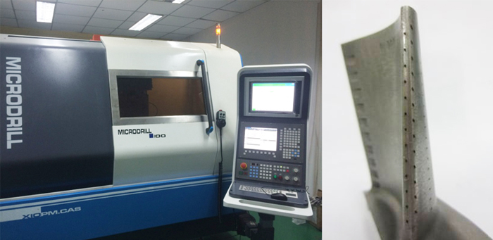 基于開放式數(shù)控技術平臺,公司通過與激光設備廠商、航空制造領域的用戶密切合作,開發(fā)出雙通道11軸超快激光加工用專用數(shù)控系統(tǒng)。系統(tǒng)解決了多通道控制、RTCP、高速程序預處理、焦距測量、三維測量、光路切換、四光楔掃描以及功率檢測等關鍵技術。系統(tǒng)的一個通道實現(xiàn)5軸聯(lián)動,用于葉片工件姿態(tài)轉換;一個通道實現(xiàn) 6 軸聯(lián)動,用于激光設備光束指向調整和打孔檢測。設備適用于金屬、非金屬等材料表面的微結構處理,如微腔、型腔、盲孔、通孔、異型孔異型槽及復雜形貌微結構的加工等,并在航空制造領域進行應用,解決了航空發(fā)動機葉片打孔加工的技術瓶頸。