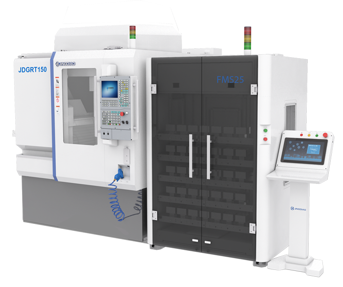 另一臺復(fù)合型五軸高速加工中心JDGRT150,搭載JDFMS25柔性制造系統(tǒng),現(xiàn)場演示了多款電子治具的精密加工及自動上下料過程。樣件采用五軸分度加工方式,一次裝夾完成多面加工,產(chǎn)品精度和表面質(zhì)量符合要求。通過配合自動化單元,該機(jī)可實現(xiàn)小批量多品種產(chǎn)品的連續(xù)加工,提高生產(chǎn)節(jié)拍和機(jī)床使用率。