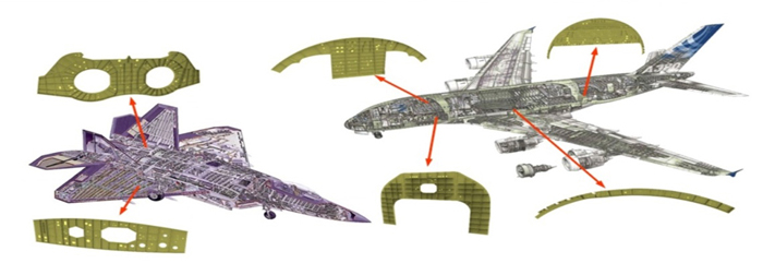 航空復雜結構件的梁、框、肋、壁板、接頭、長桁等主要以鋁合金、鈦合金和復合材料組成,航天復雜結構件的殼體類、復雜筒類、功能關鍵部件等主要以鋁合金和復合材料組成。