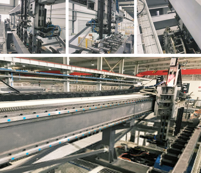 擁有最多1000把刀的生產線中央刀具庫設計,是華中數控參與建設的智能柔性加工生產線的最大亮點。生產線的中央刀具庫建立在機床上方,不占地面空間。生產線管控系統的刀具管理系統統一控制生產線中央刀庫和各個加工中心的本地刀庫,根據排產計劃對各個加工中心的刀具進行統一調配和管理,同時自動修改數控系統的刀具參數,實現柔性化加工生產。