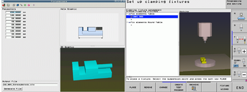 由于機床廠家已經描述定義了DCM系統中的機床主體部件,為實現夾具監控,需要進入FIXTURE MANAGEMENT界面,如圖5所示,調用夾具模板文件(后綴名.cft),并根據實際情況修改模板尺寸并保存(后綴名.cfx)。然后進入PLACE界面,利用機床配置的接觸式探頭測量功能,測出夾具在機床區域內實際位置。