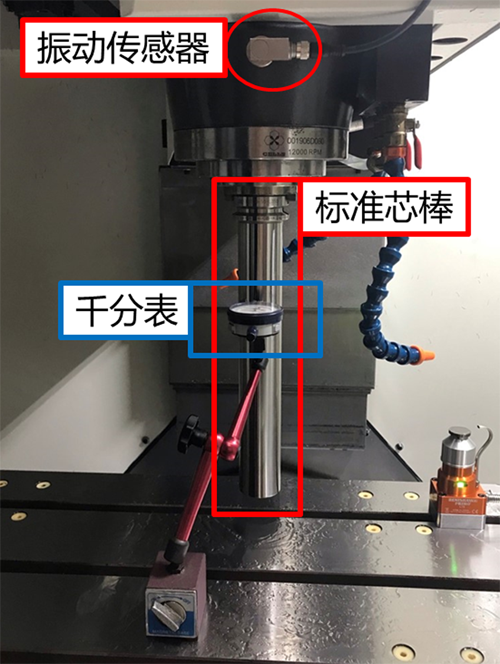 動態精度法:利用三向振動傳感器,測量主軸4000r/min空轉時,在X、Y、Z三個方向主軸振動值,評估主軸軸承狀態。