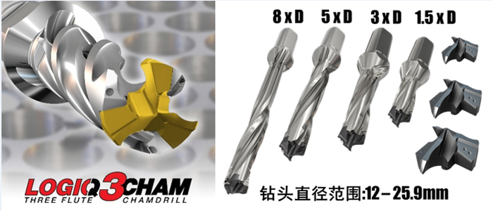 LOGIQ3CHAM獨特的刃型結構設計,特別適合灰鑄鐵、球鐵、碳鋼、合金鋼等材料的高效鉆孔。