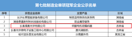 制造業單項冠軍企業:長春禹衡光學