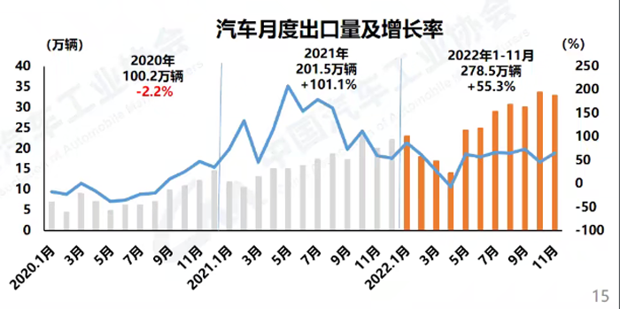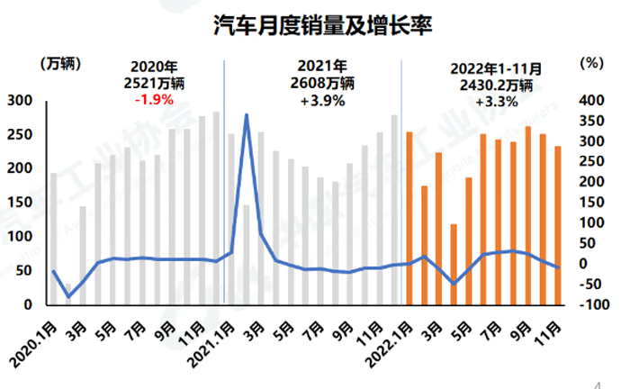 在近日中國汽車工業協會召開的信息發布會上,中汽協副秘書長陳士華表示,隨著經濟下行壓力不斷加大、疫情對汽車消費市場沖擊影響,消費者購車需求釋放受阻,終端市場表現疲軟,為汽車市場穩定運行帶來較大壓力。2022年11月汽車行業經濟運行呈現以下特點:汽車產銷總體表現不及預期;乘用車產銷同比有所下降;商用車市場呈低位徘徊態勢;新能源汽車連創歷史新高;重點企業集團總體表現穩定;汽車出口保持較高水平;行業經濟效益指標持續改善。