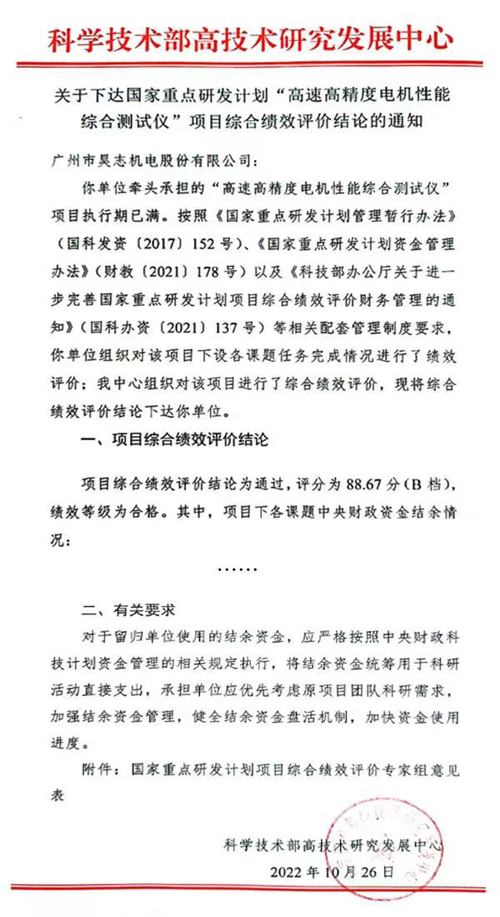 昊志機(jī)電承擔(dān)的國(guó)家重點(diǎn)研發(fā)計(jì)劃“高速高精度電機(jī)性能綜合測(cè)試儀”項(xiàng)目順利通過(guò)驗(yàn)收