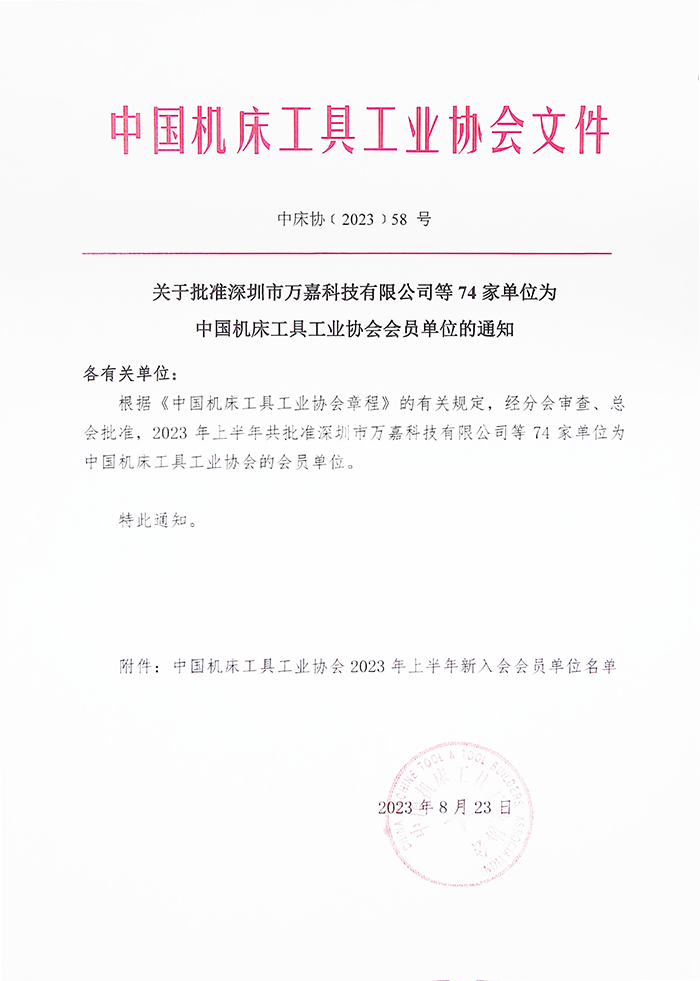 日前,中國機床工具工業協會發文“關于批準深圳市萬嘉科技有限公司等74家單位為中國機床工具工業協會會員單位的通知”【中床協﹝2023﹞58 號】(文件附后),顯示又有74家機床工具企業加入到協會大家庭,成為正式會員單位,由此協會會員單位已突破2000家。