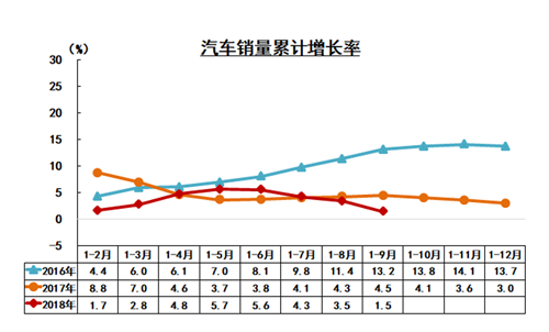 10月12日中國汽車工業協會消息,2018年9月,我國汽車產銷量環比增長,但同比呈較快下降。1-9月,汽車產銷同比小幅增長,增速繼續回落。中汽協有關人員表示,年初制定的3%增長預期可能會落空,但希望能保持正增長。中汽協師建華副秘書長認為,這也是汽車工業在多年中高速增長后的理性回歸,企業可借機進行產品品質提升和高質量發展的轉型。