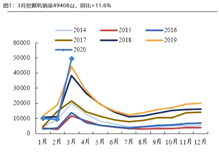 4月挖機銷量預判:3月15日以來,銷量快速上升,部分機型已經開始出現缺貨現象,在重點項目復工率基本到位的情況下,預計4月挖機銷量能夠與3月環比持平,這將會是歷史性的,因為往年都是3月為全年高點,今年4月也可能是高點,預計4月挖機行業銷量同比增長55%左右。