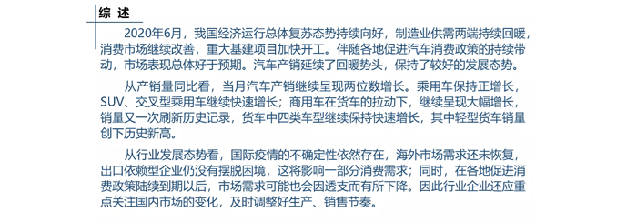 1-6月,商用車產銷同比增長9.5%和8.6%,結束了下降趨勢。在商用車主要品種中,客車產銷均呈下降,貨車產銷呈較快增長。