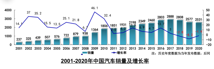 從汽車行業發展趨勢來看,伴隨國民經濟穩定回升,消費需求還將加快恢復,加之中國汽車市場總體來看潛力依然巨大,因此判斷2020年或將是中國汽車市場的峰底年份,2021年將實現恢復性正增長,汽車銷量有望超過2600萬輛,同比增長4%。其中,電動化、智能化、網聯化、數字化加速推進汽車產業轉型升級,新能源汽車市場也將從政策驅動向市場驅動轉變。尤其是在《新能源汽車產業發展規劃(2021-2035年)》大力推動下,新能源汽車未來將有望迎來持續快速增長。但需要注意的是,近期出現的芯片供應緊張問題也將在未來一段時間內對全球汽車生產造成一定影響,進而影響我國汽車產業運行的穩定性。