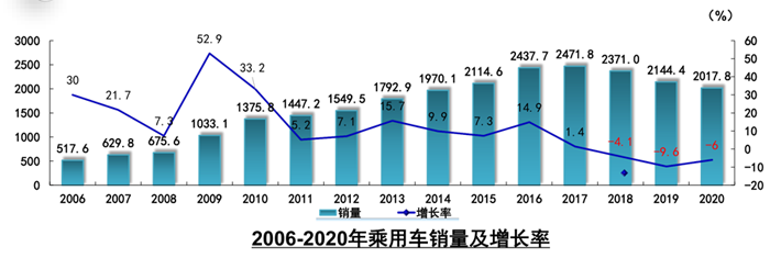 2020年,突如其來的新冠肺炎疫情為汽車行業按下了“暫停鍵”,在巨大的沖擊下,全行業同舟共濟,不畏艱難,堅決落實黨中央、國務院的決策部署,扎實推進復工復產,加快轉變營銷方式,積極促進汽車消費,汽車市場逐步復蘇,全年產銷增速穩中略降,基本消除了疫情的影響,汽車行業總體表現出了強大的發展韌性和內生動力。全年汽車產銷分別完成2522.5萬輛和2531.1萬輛,同比分別下降2%和1.9%,降幅比上年分別收窄5.5和6.3個百分點。