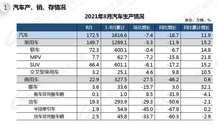 2021年8月汽車產(chǎn)銷延續(xù)下降勢頭