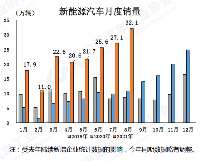 1-8月,新能源汽車產(chǎn)銷分別達到181.3萬輛和179.9萬輛,同比增長均為1.9倍。在新能源汽車主要品種中,與上年同期相比,純電動和插電式混合動力汽車產(chǎn)銷均延續(xù)了迅猛增長勢頭。