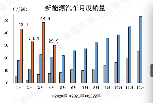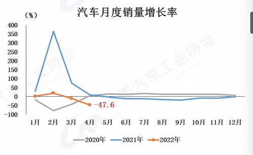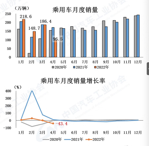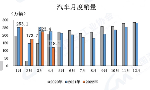 眾所周知,2022年4月,國內疫情總體呈現多發態勢,形勢更為嚴峻復雜,市場主體困難顯著增加,經濟下行壓力進一步加大。汽車行業產業鏈供應鏈也經歷了有史以來最為嚴酷的考驗,部分企業停工停產,物流運輸受到較大阻礙,生產供給能力急劇下滑。同時受疫情影響,消費能力和意愿明顯下降,行業穩增長任務十分艱巨。因此,4月汽車產銷明顯下降,當月銷量跌破120萬輛,為近10年以來同期月度新低。
