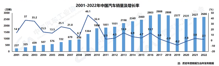 中國汽車工業協會最新數據顯示,2022年12月汽車產量環比微降,銷量小幅增長,同比均呈現下降。2022年全年,汽車產銷分別完成2702.1萬輛和2686.4萬輛,同比增長3.4%和2.1%,實現小幅增長。