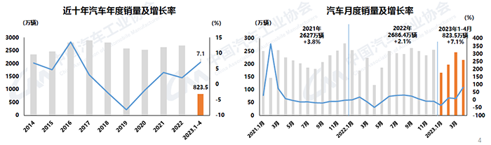 1-4月,汽車產銷累計完成835.5萬輛和823.5萬輛,同比分別增長8.6%和7.1%。由于去年4月疫情導致生產供應基本停滯,汽車產銷一度出現斷崖式下跌,同期基數相對較低,累計產銷實現由負轉正。但也要看到,當前我國經濟下行壓力持續加大,經濟運行主要呈現恢復性好轉,需求仍然不足,企業經營壓力普遍偏大,加之國際局勢復雜多變,汽車工業穩增長任務依然較重,需要穩定和擴大汽車消費的有效政策持續提振,全力促進汽車消費潛能釋放,推動汽車行業穩定運行。