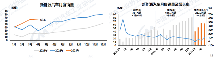 1-4月,新能源汽車產銷累計完成229.1萬輛和222.2萬輛,同比均增長42.8%,市場占有率達到27%。
